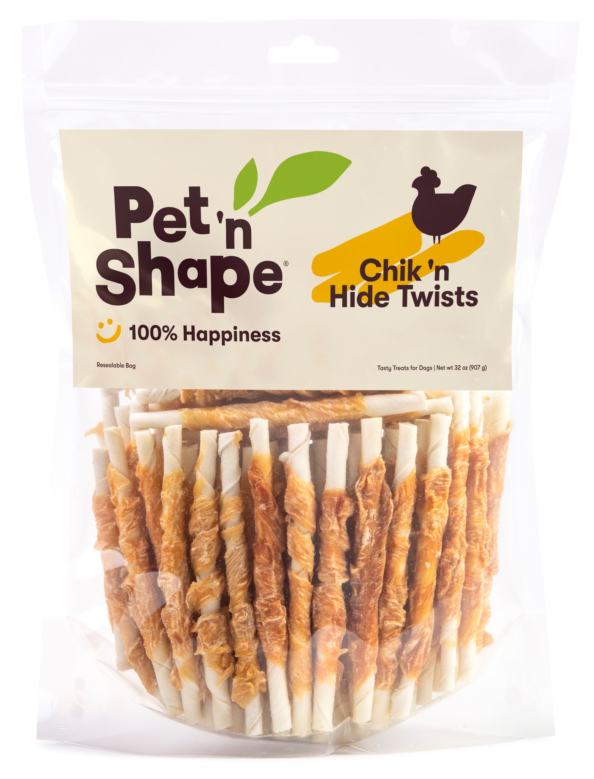 Pet 'n Shape natural Hide Twists are made from naturally delicious chicken or duck breast wrapped delicately around a savory rawhide chew. Small and large sizes are available to reward pups of all sizes.
