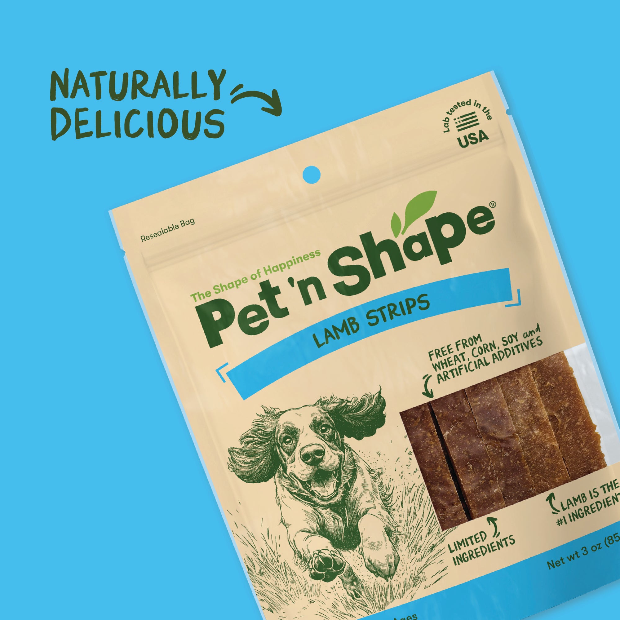 Pet 'n Shape natural Lamb Strips are made from naturally delicious lamb meat formed into a delectable, chewy snack strip perfect to reward playful pups of all sizes or to break into smaller pieces to use as a delicious training tool.