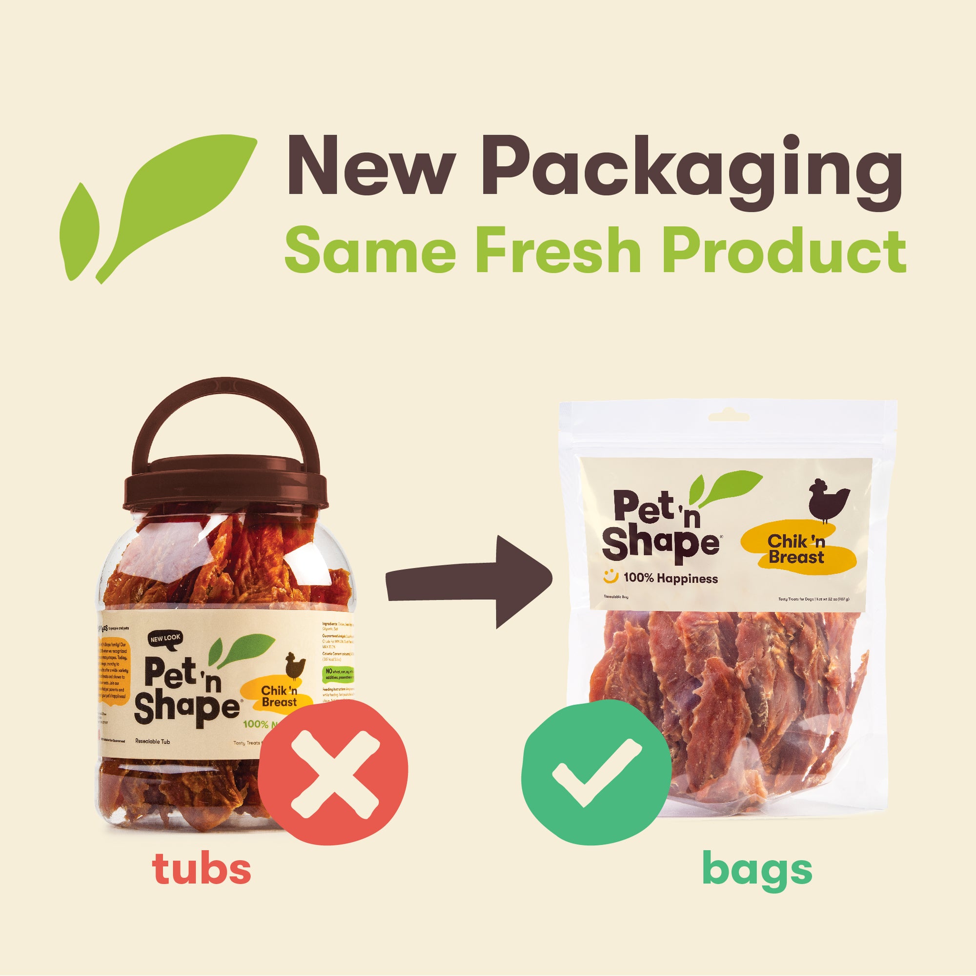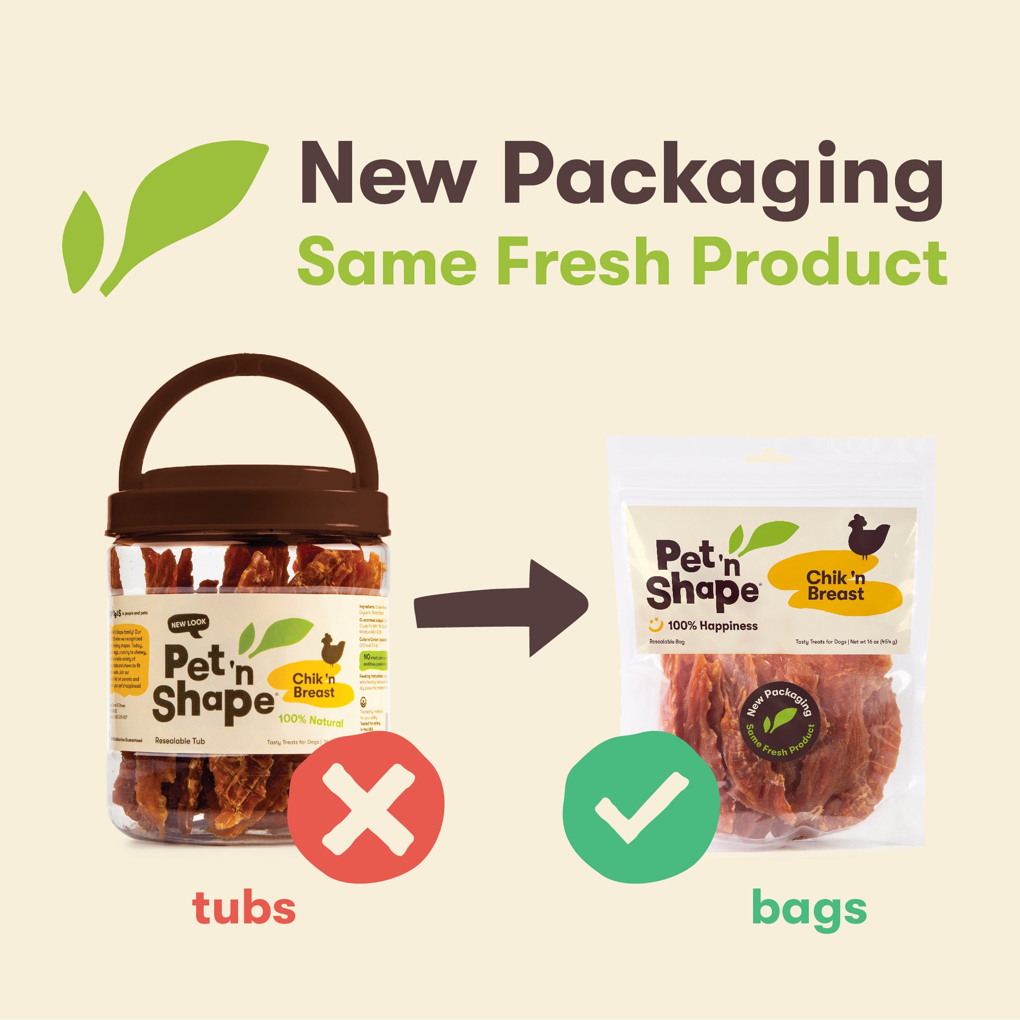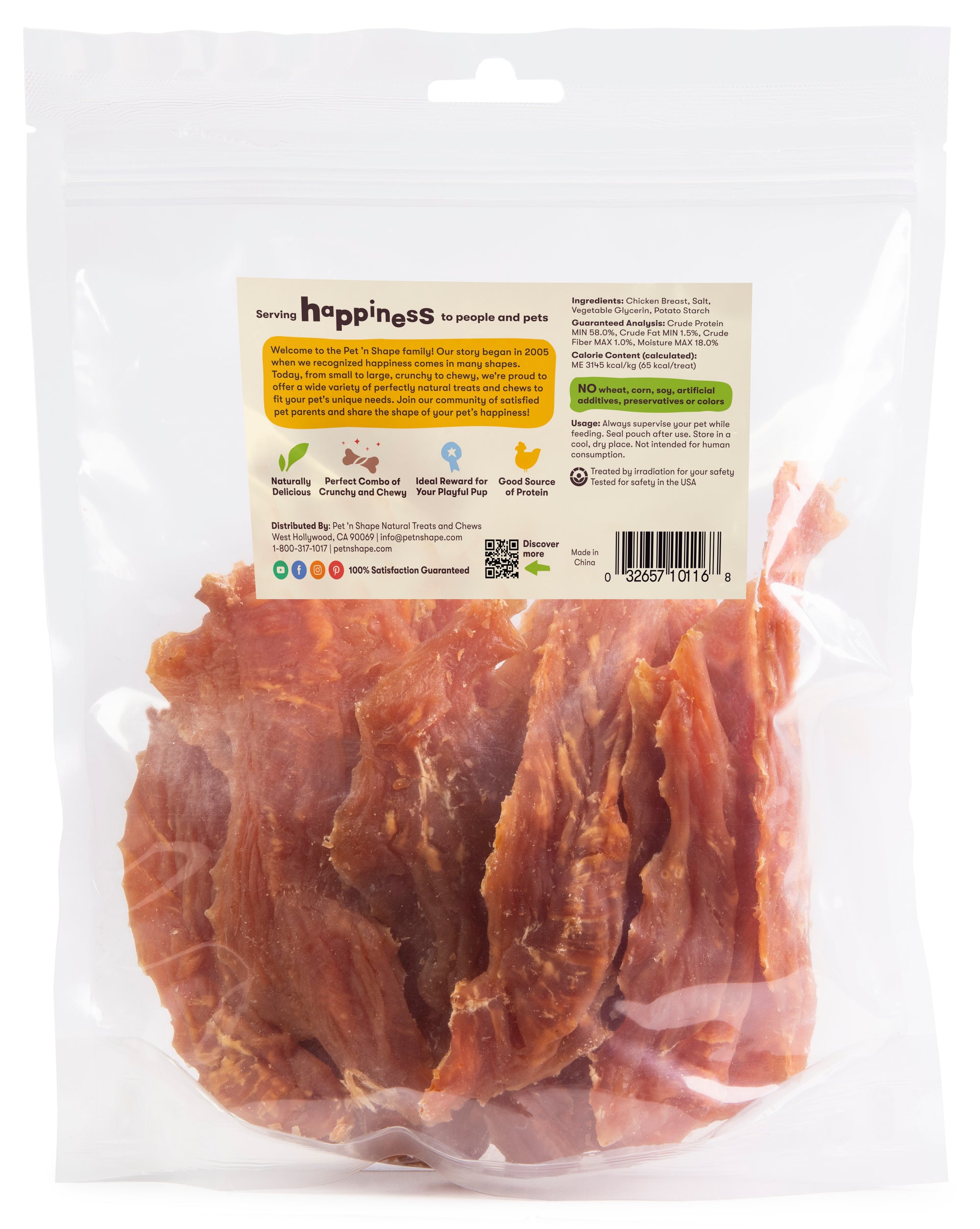 A true fan favorite, Pet 'n Shape Chik 'n Breast Jerky is made with real, naturally delicious dehydrated chicken breast fillets. These low-fat treats provide a healthy serving of protein and are an ideal delicious and chewy snack for dogs of all sizes.