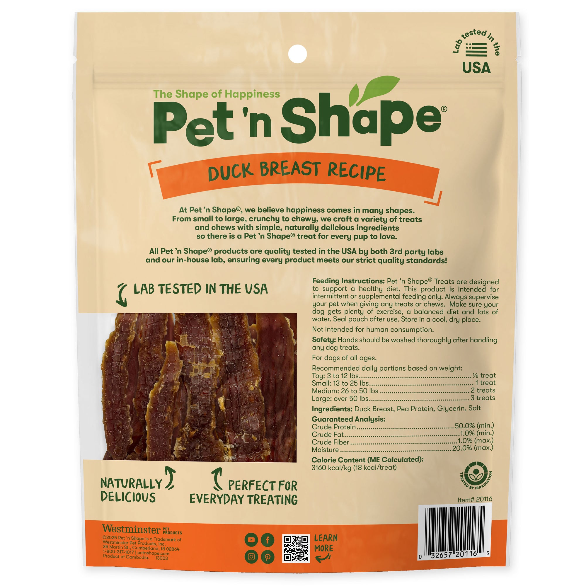 Pet 'n Shape naturally delicious duck breast fillets are roasted to perfection and are delightfully chewy. Simply perfect for rewarding your pup any time.