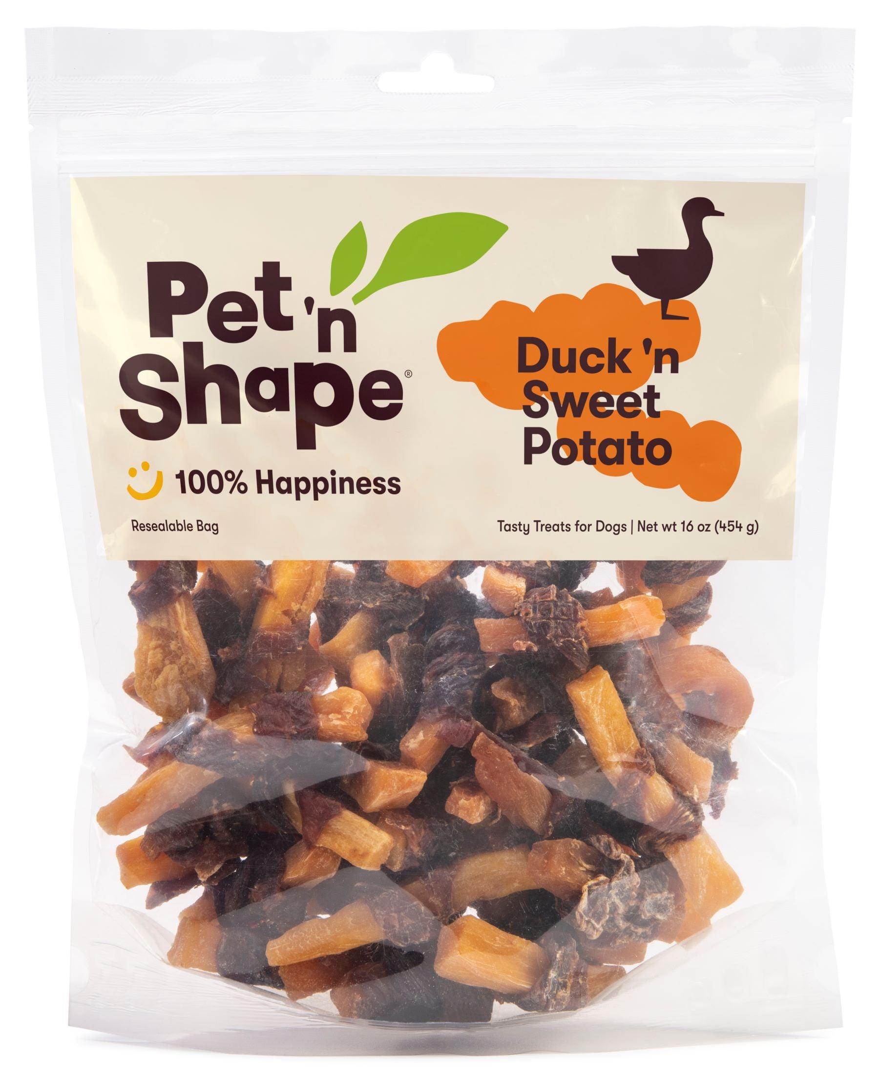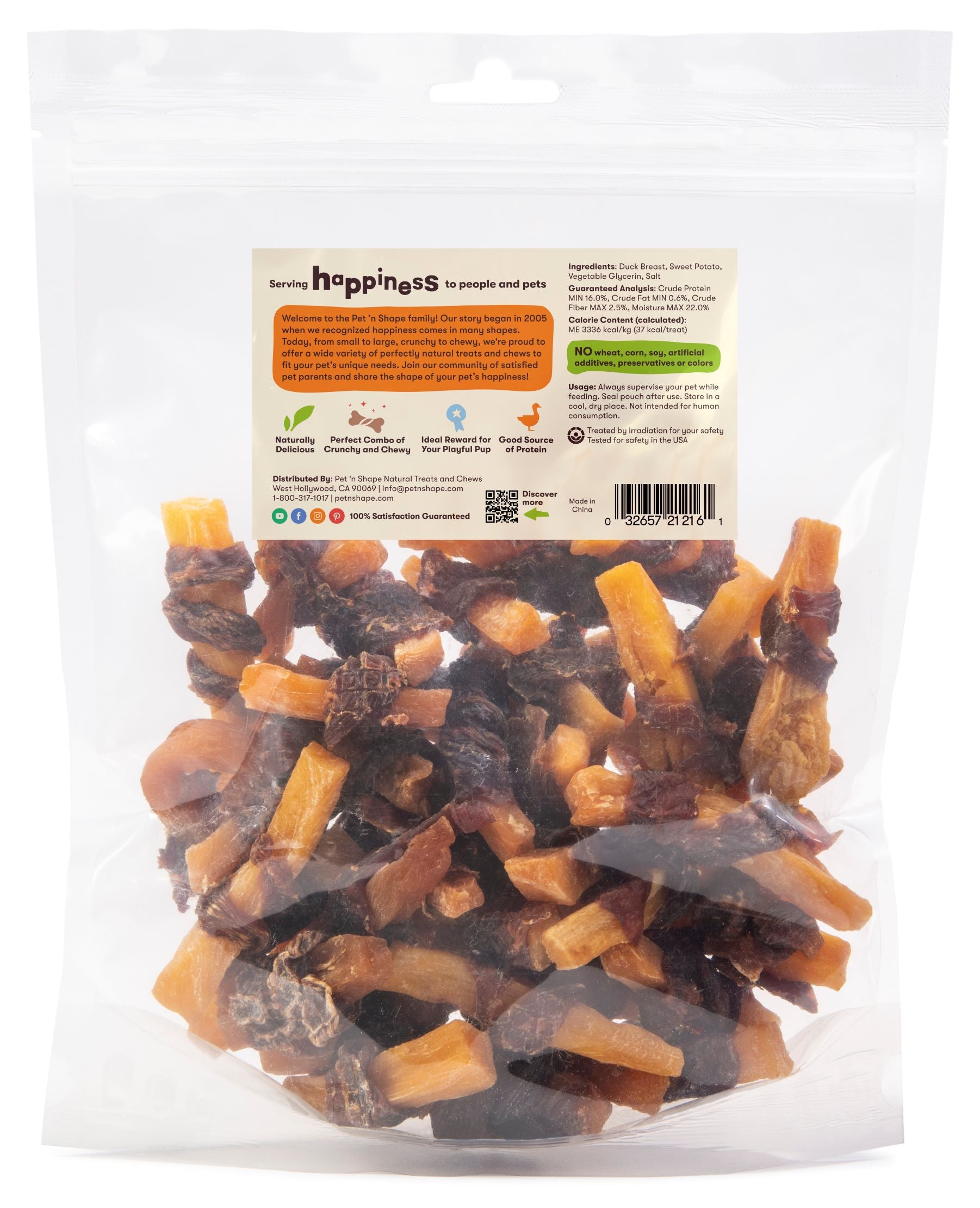 A Pet 'n Shape classic and fan favorite! Duck 'n Sweet Potato treats are made from naturally delicious duck breast wrapped around a bite-sized piece of vitamin-rich sweet potato.