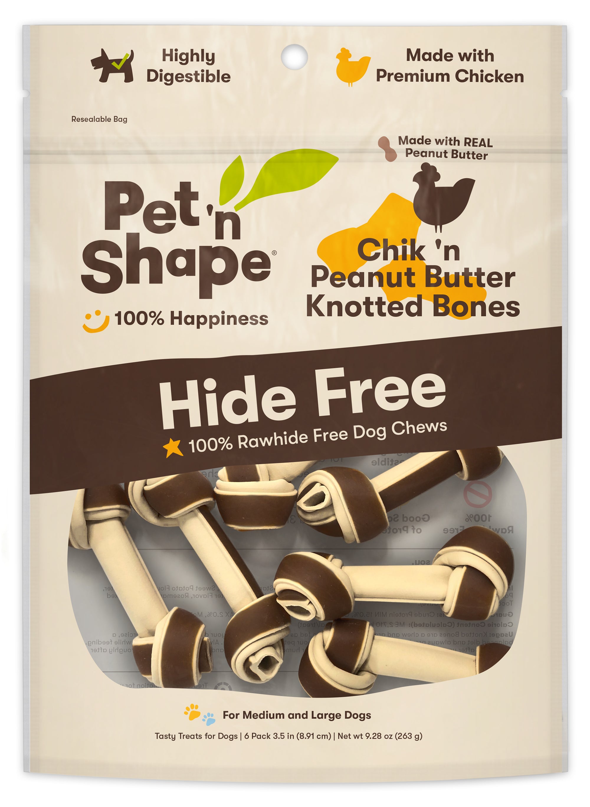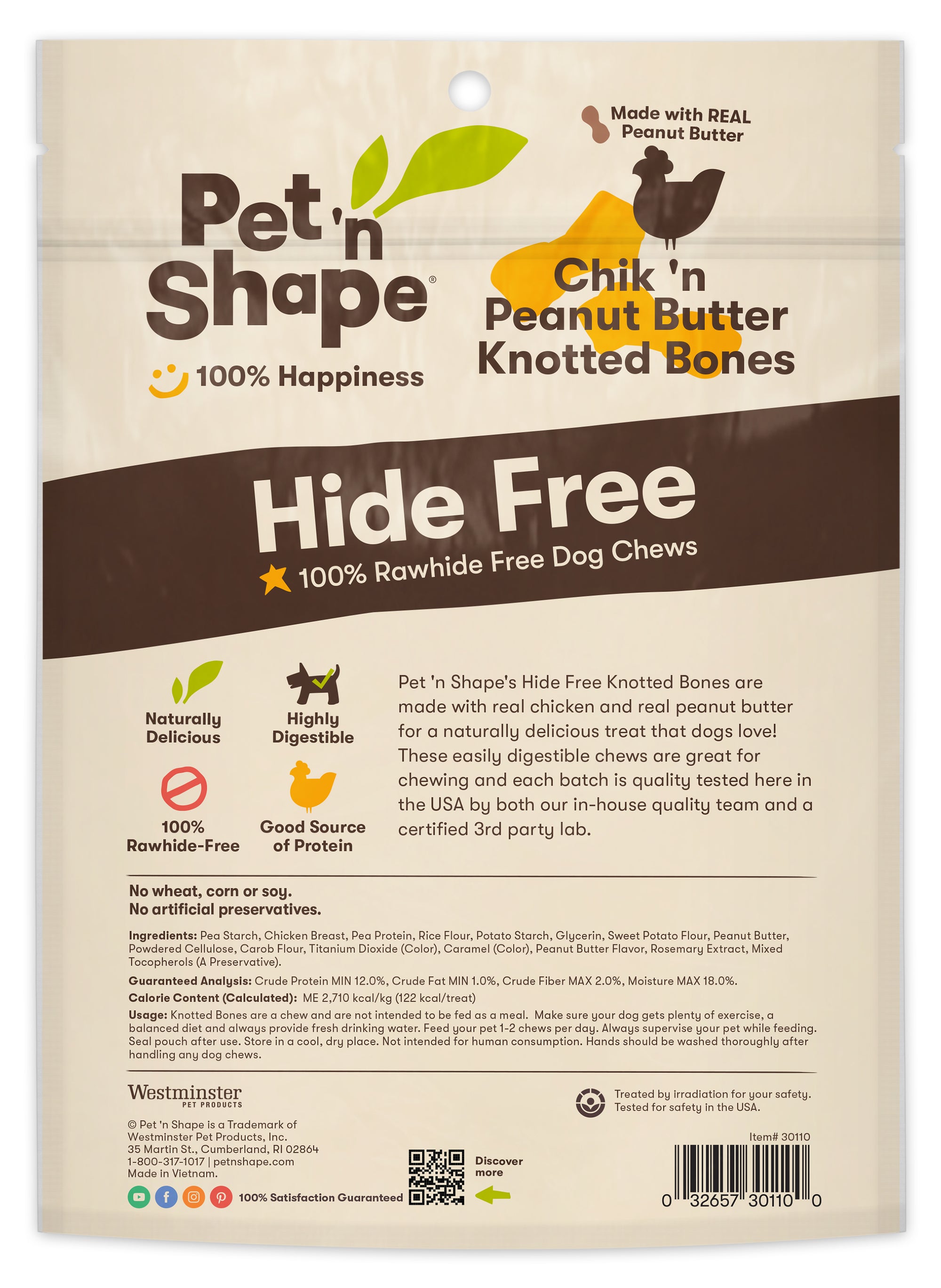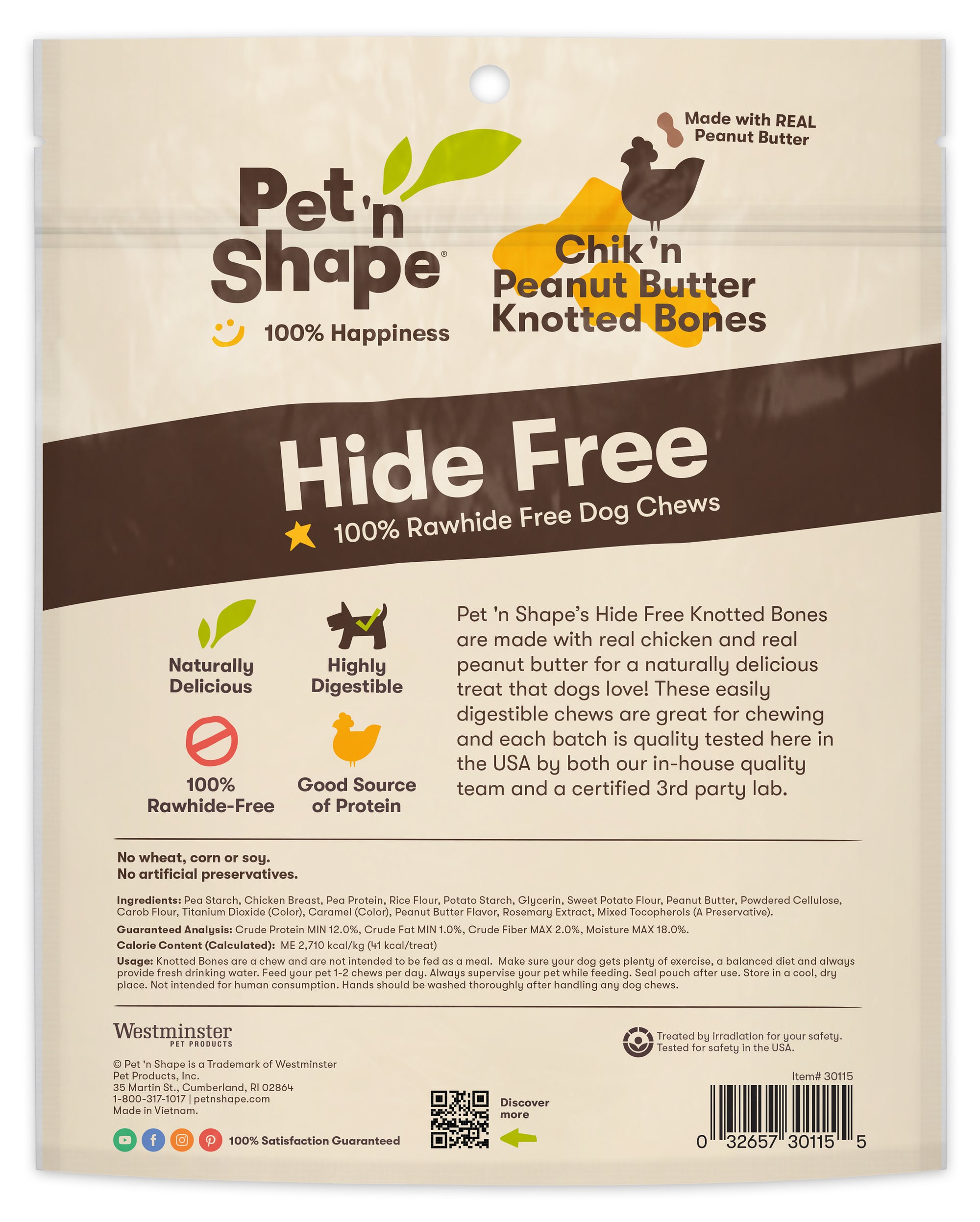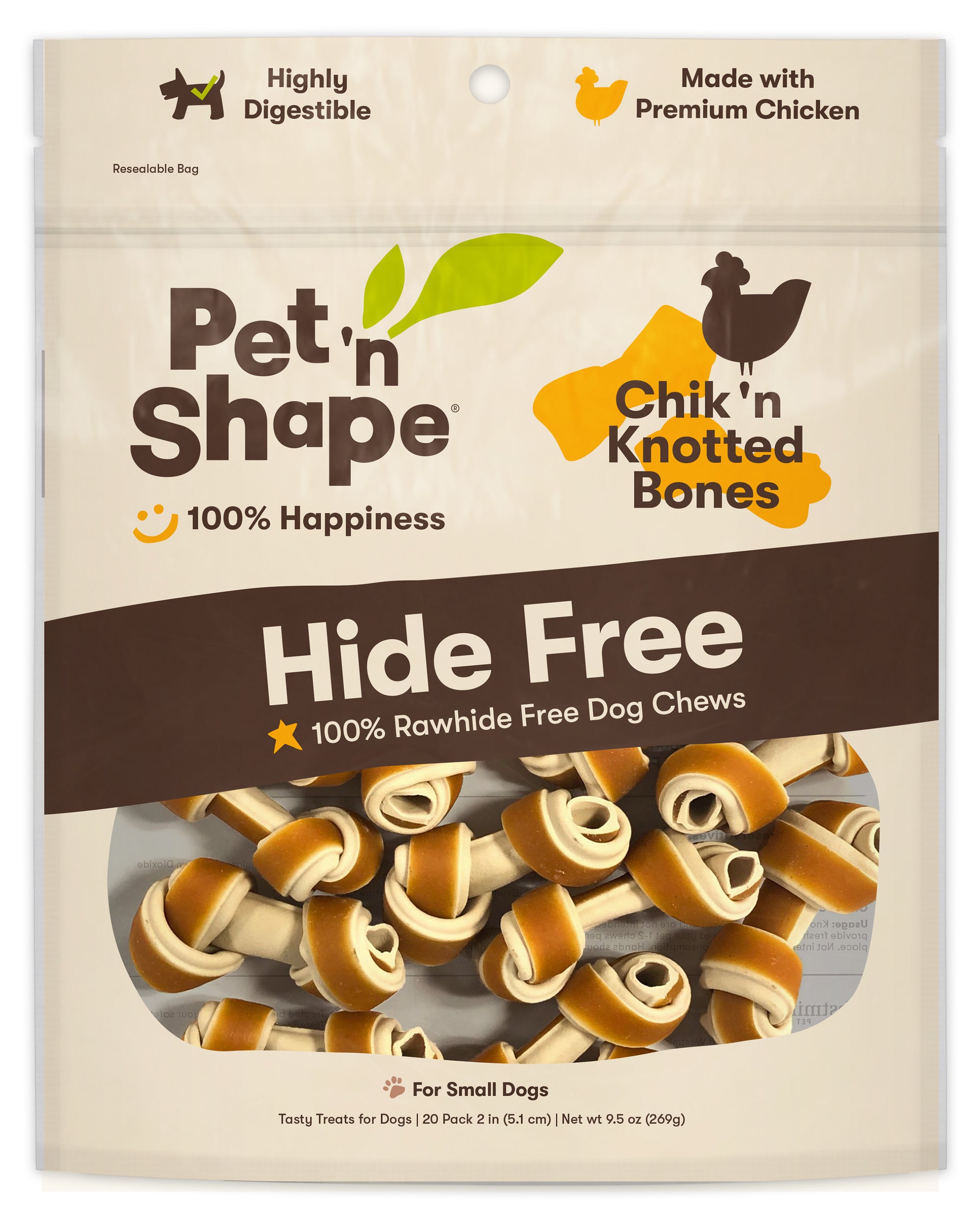 Treat your furry family member to a hide free chew built for taste with Pet 'n Shape Hide-Free Two-Tone Chik 'n Knot Bones dog treats! These naturally delicious treats are individually knotted and are made with real chicken. Each treat is designed to give your pup more of what you want and less of what you don't, these chews don’t contain preservatives or grains.