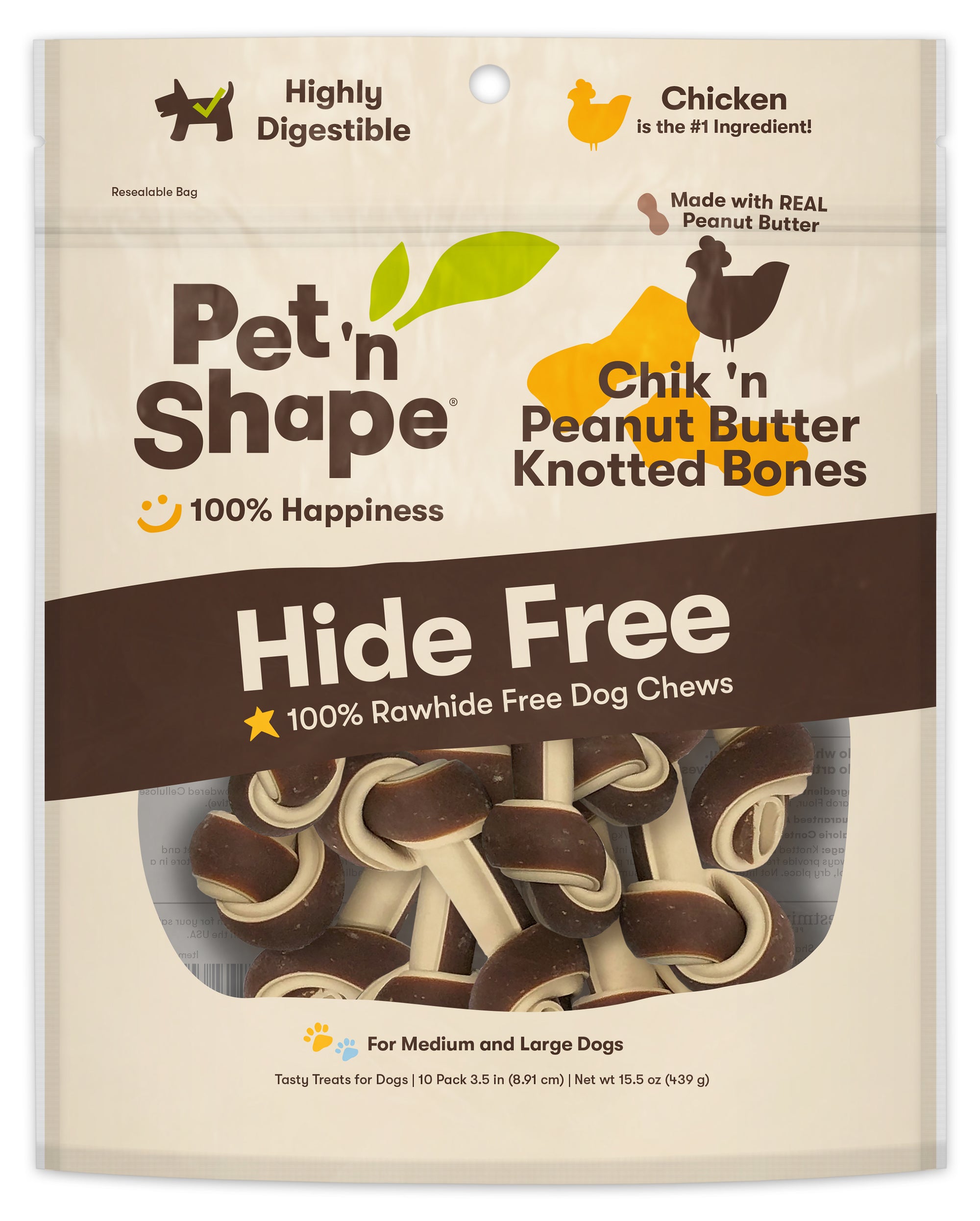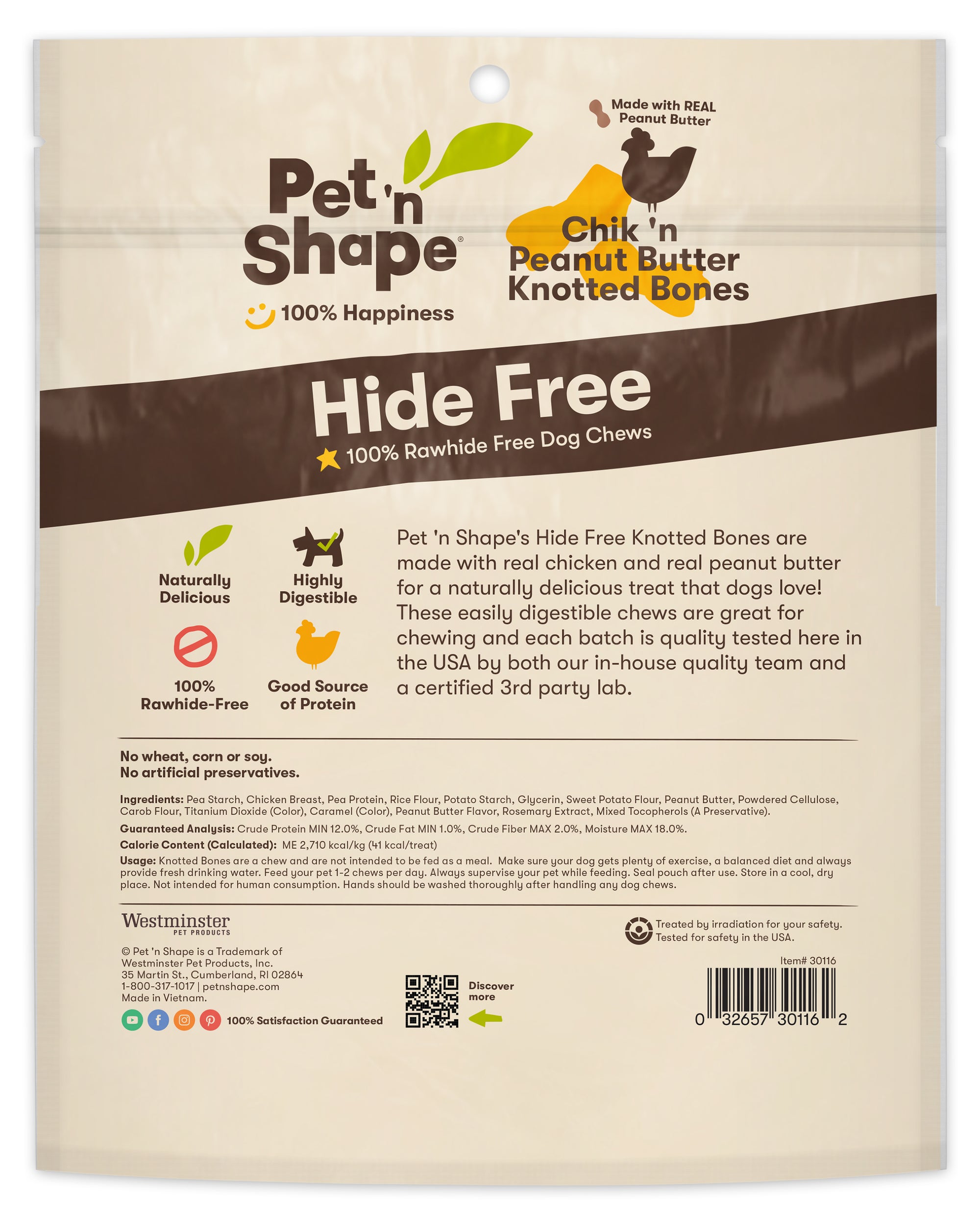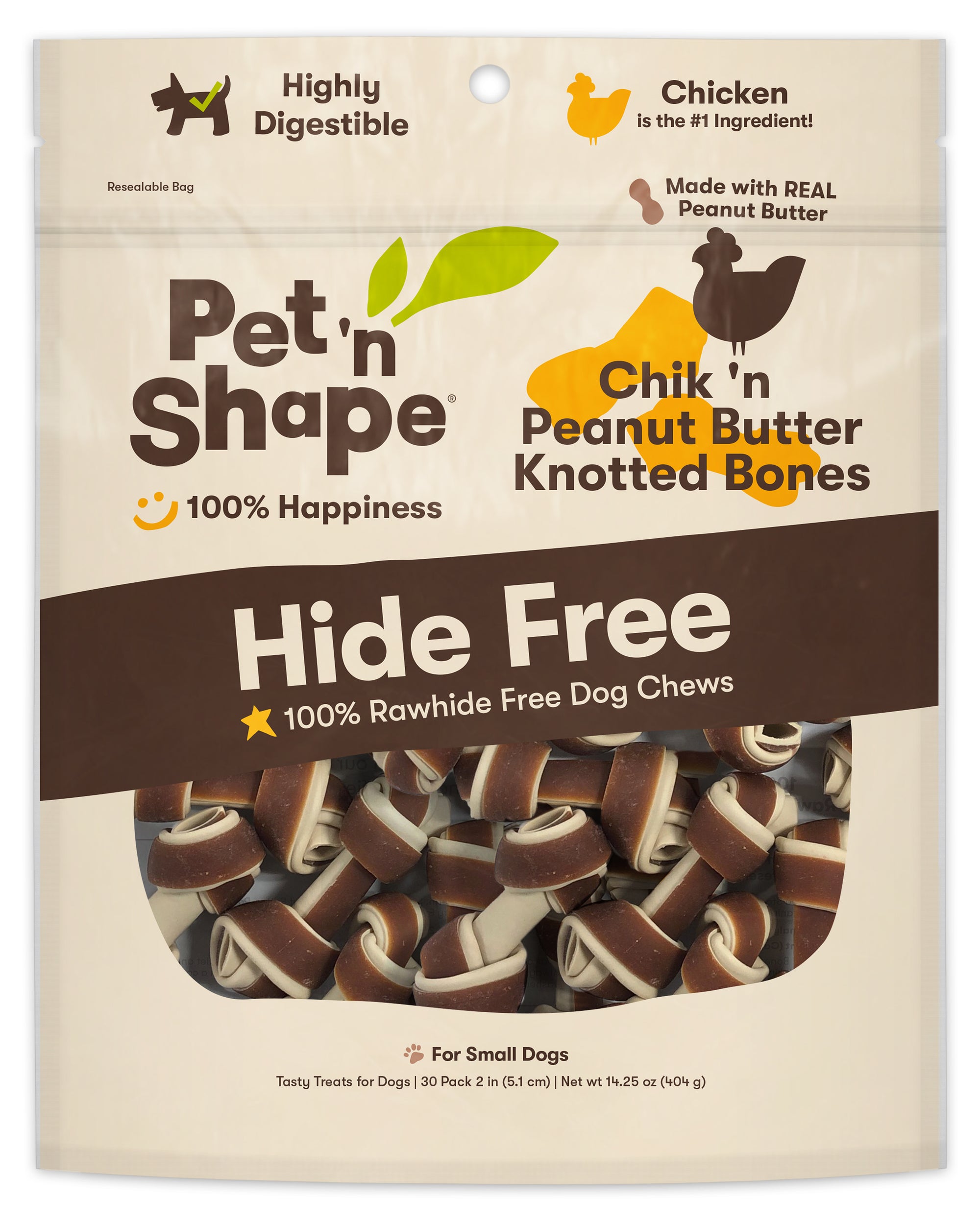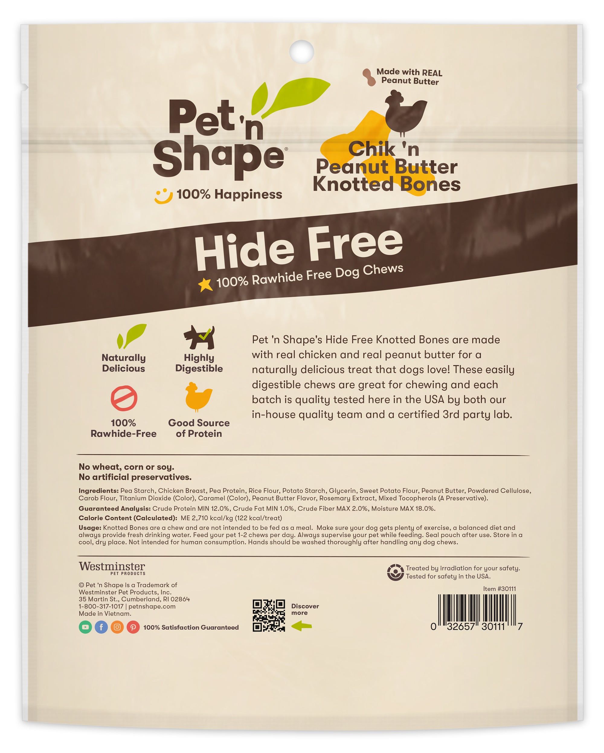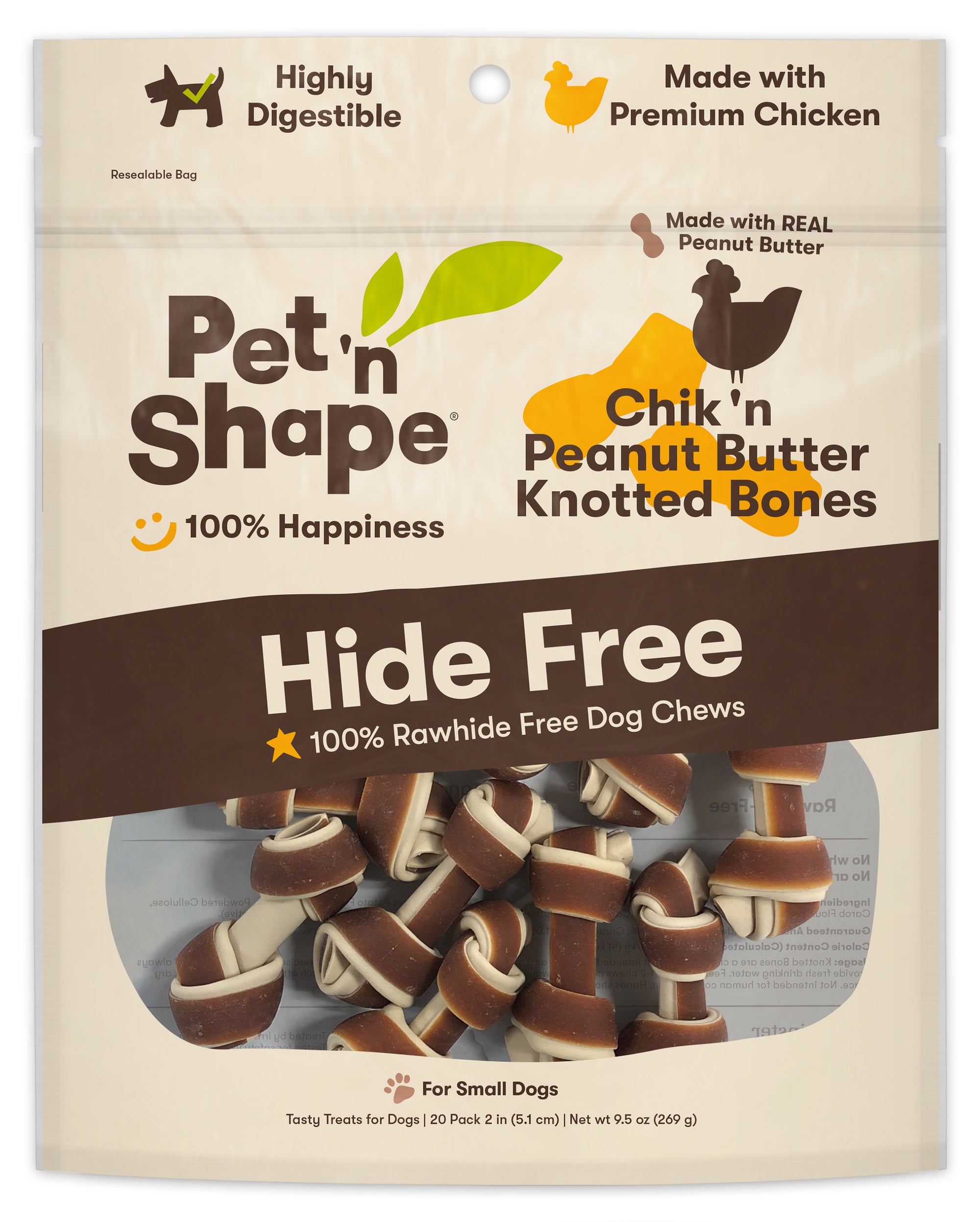 Treat your furry family member to a hide free chew built for taste with Pet 'n Shape Hide-Free Two-Tone Chik 'n Knot Bones dog treats! These naturally delicious treats are individually knotted and are made with real chicken. Each treat is designed to give your pup more of what you want and less of what you don't, these chews don’t contain preservatives or grains.
