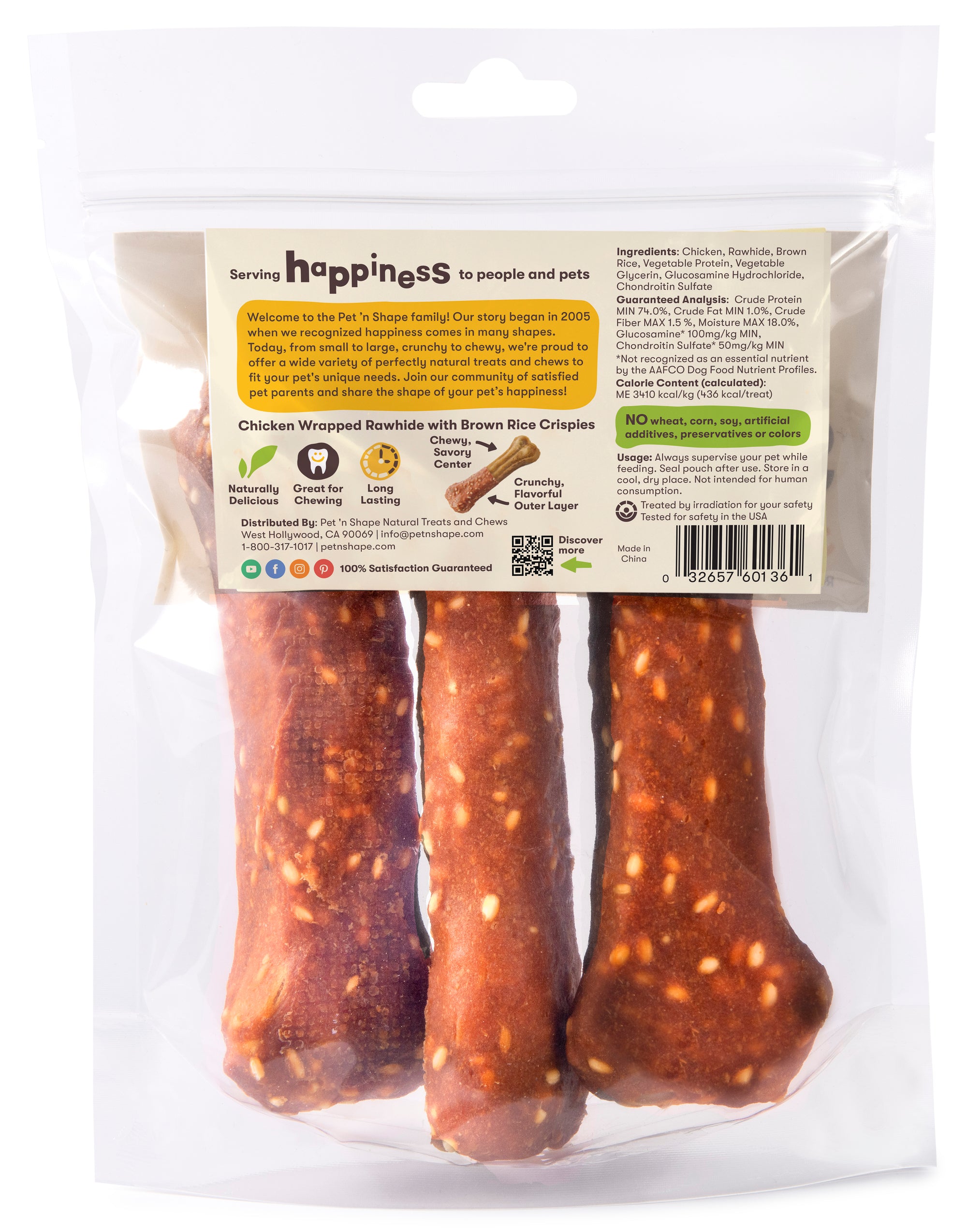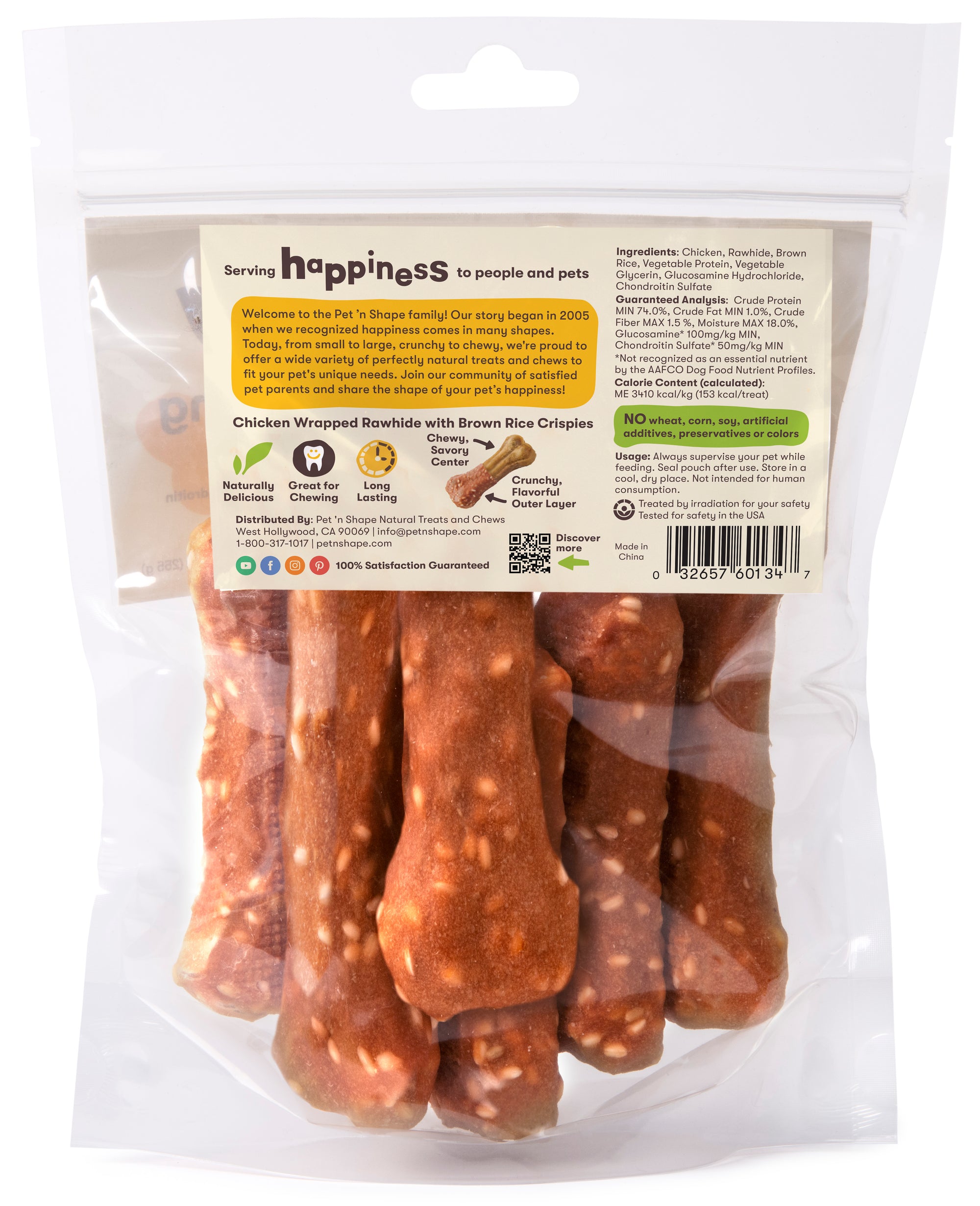 Chicken, Rawhide, Brown Rice, Vegetable Protein, Vegetable Glycerin, Glucosamine Hydrochloride, Chondroitin Sulfate